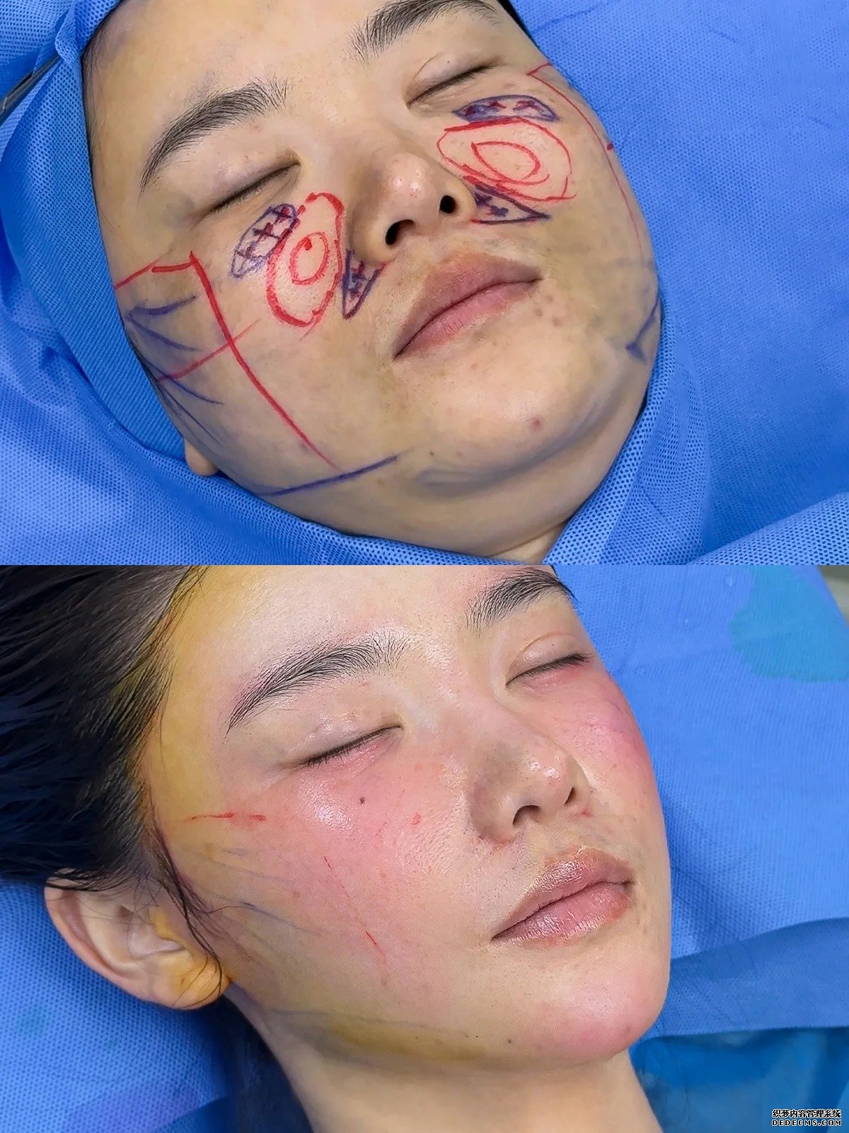 奥美定危害不仅体现在外观形态改变,其释放的有毒单体更可引发组织慢性炎症、感染,甚至增加癌变风险,必须尽早干预。齐医生结合患者具体情况,决定采用我院成熟的“全息六维层离清奥术”联合高清3D内镜技术,为王女士施行了面部奥美定取出修复手术。